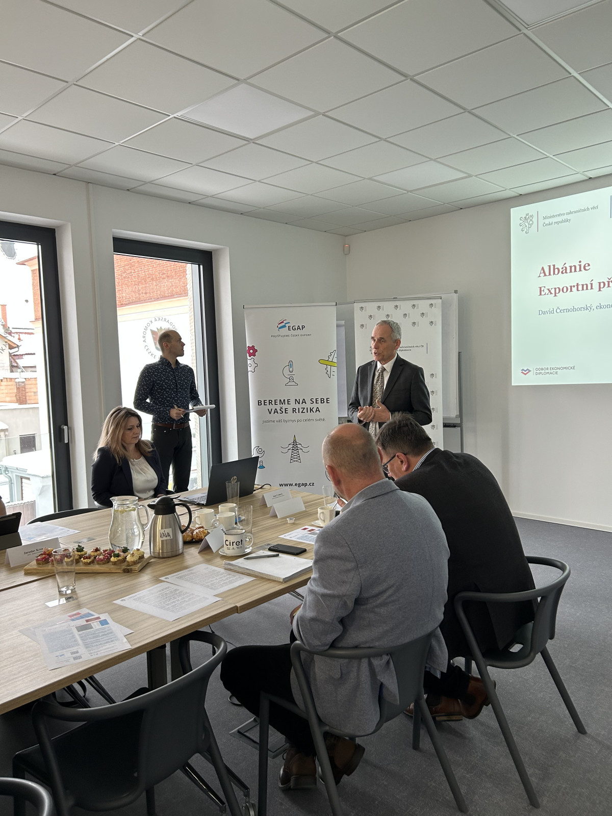Svůj příspěvek přednesla také Markéta Smočková z EGAP, která účastníkům přiblížila možnosti pojištění a financování exportu. Inspirativní byl i vstup Vojtěcha Voláčka, obchodního ředitele společnosti CONTEG, který sdílel zkušenosti úspěšného českého exportéra do Albánie.