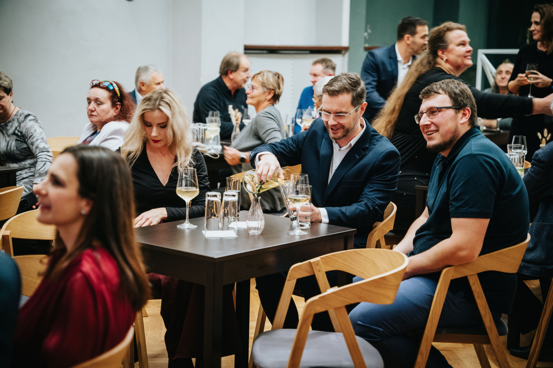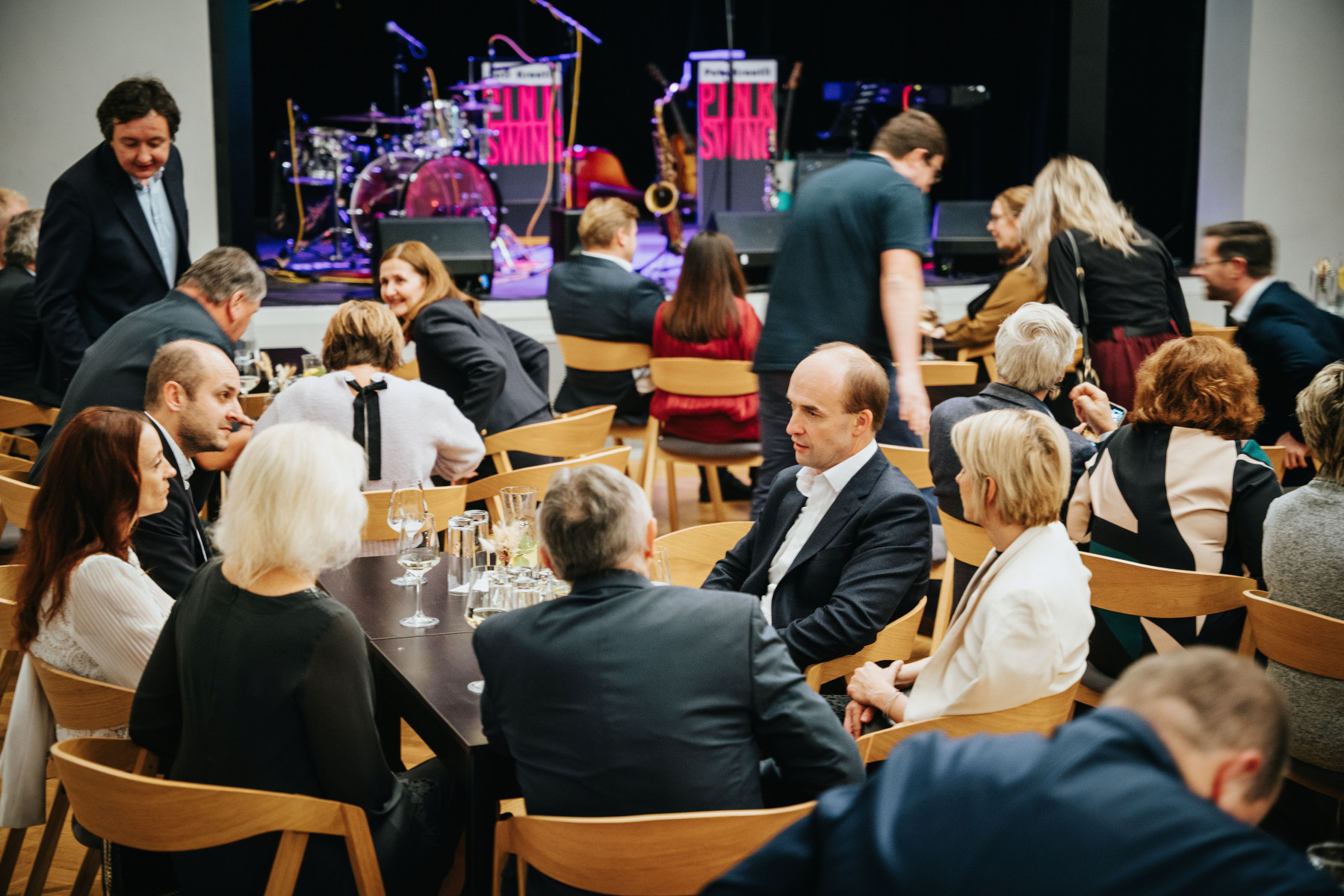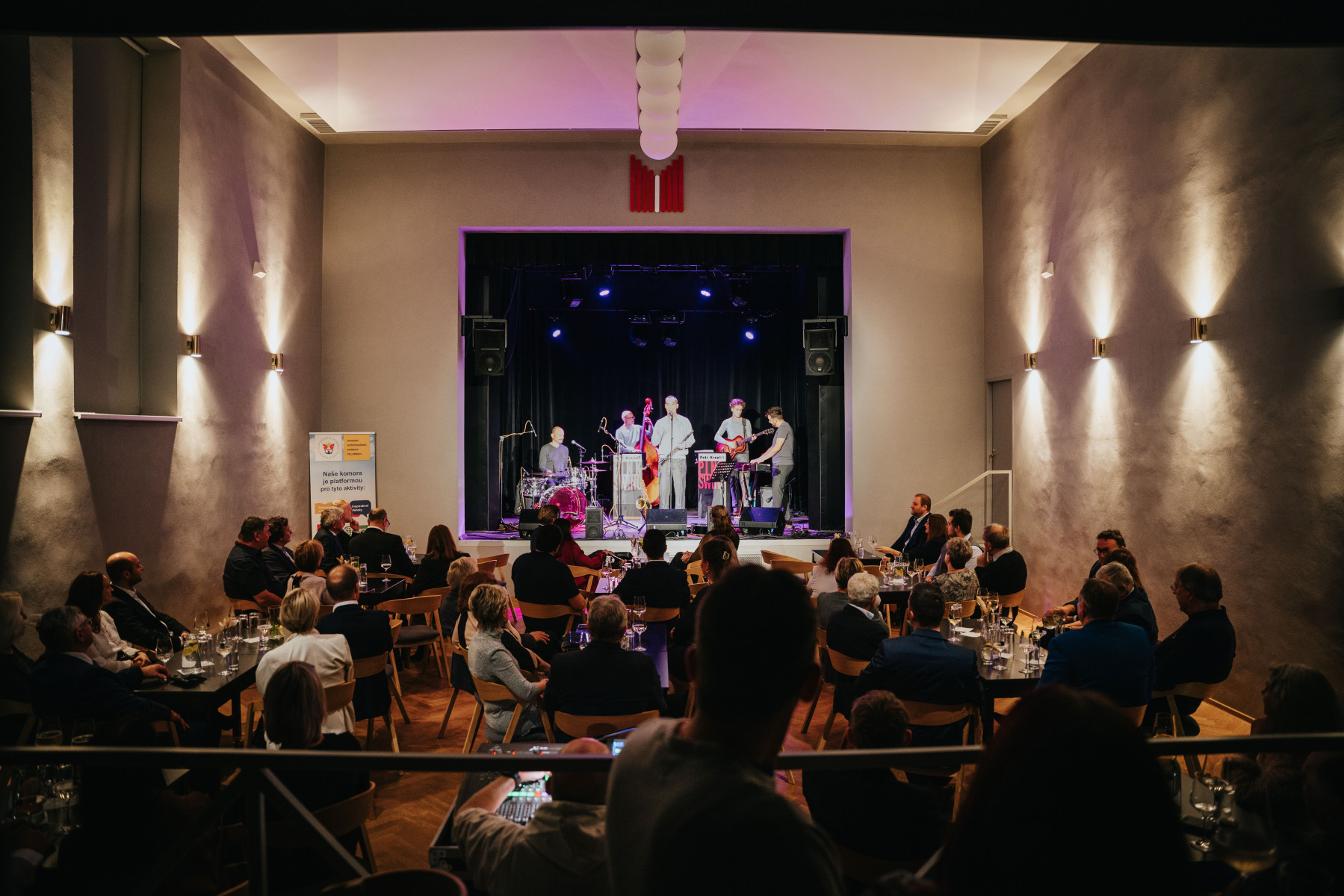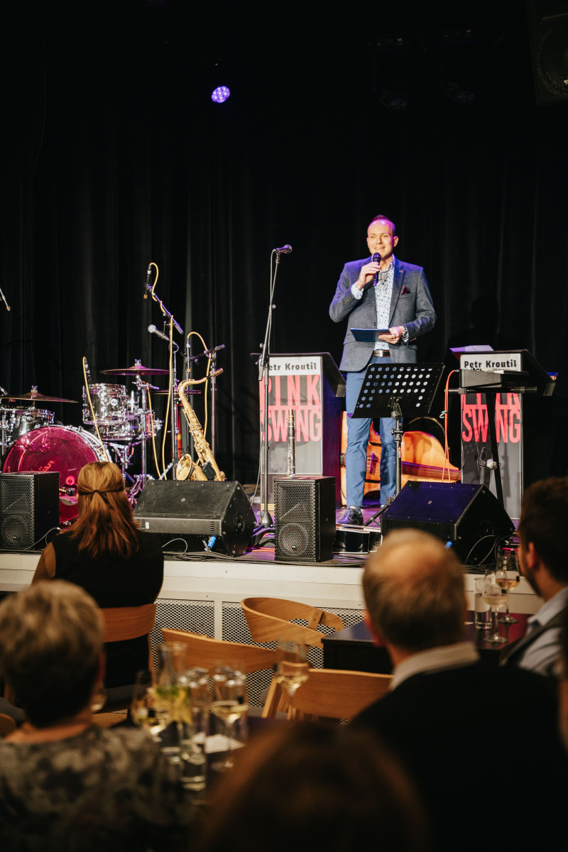 Členové hospodářské komory Pelhřimov se ve čtvrtek 4. prosince 2025 sešli na Malé scéně Kulturního domu Máj, aby spolešně oslavili nadcházející svátky. Letošní adventní setkání se neslo v neformálním, ale velmi elegantním duchu. Malá scéna KD Máj zaplnila dobrá nálada a živá diskuse mezi hosty. Hlavním bodem programu byl stylový hudební doprovod v podání Pink Swing Petra Kroutila. Jejich energické pojetí swingových standardů i moderních písní podrthl svým humorem Dalibor Gondík, který se postaral o to, aby úsměv z tváří hostů nezmizel celý večer. K příjemnému večeru patřilo i dobré jídlo a pití. Hosté si mohli vychutnat degustaci vybraných druhů Prosecca a lehké občerstvení, které skvěle doplňovalo uvolněnou atmosféru u barových stolků.