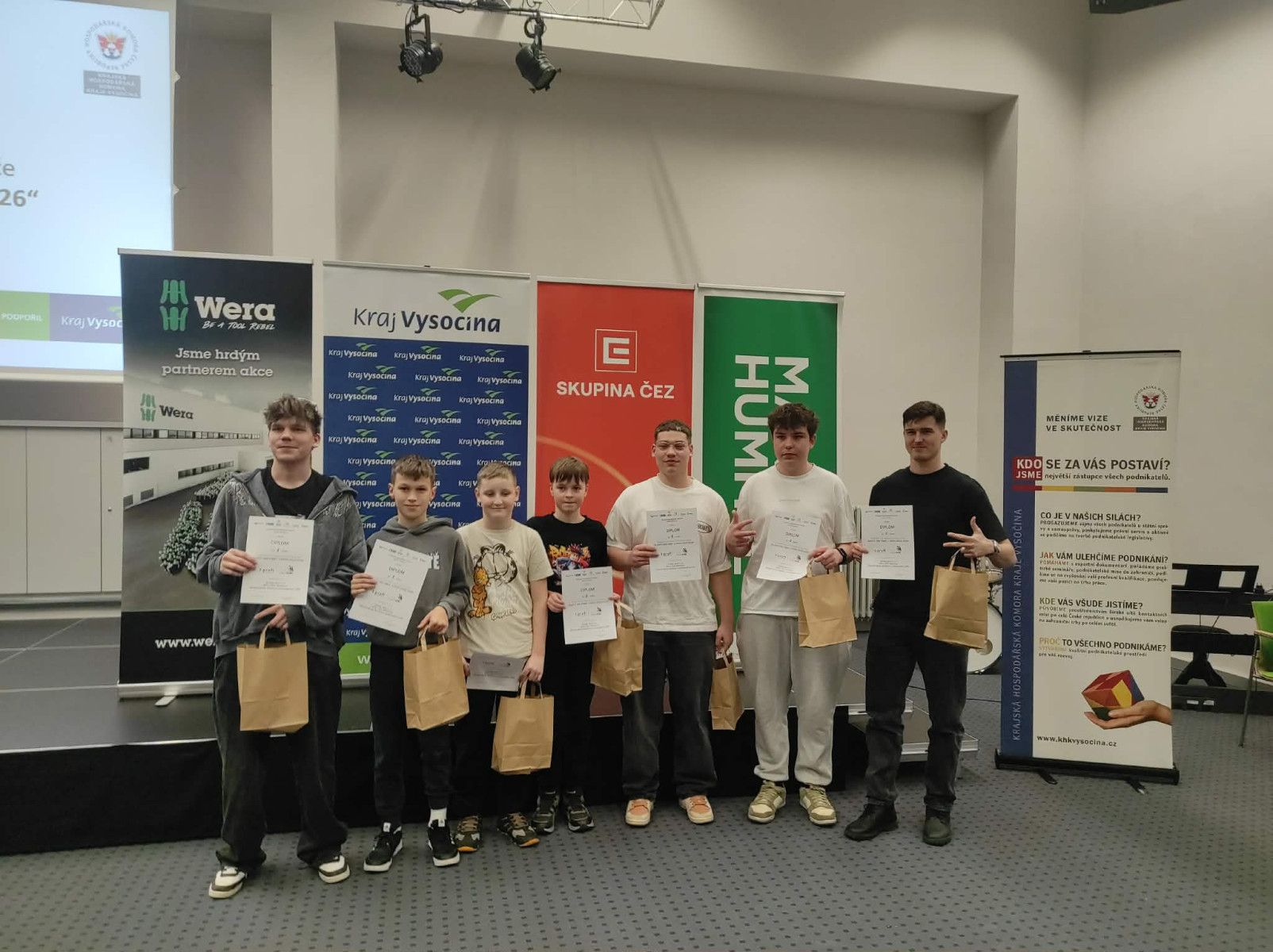 Včerejší den v Třebíči byl ve znamení techniky, týmové práce a pořádného adrenalinu! Náš společný tým složený ze studentů Střední průmyslové školy Pelhřimov a žáků ZŠ Komenského Pelhřimov, vybojoval v silné konkurenci úžasné 3. místo!