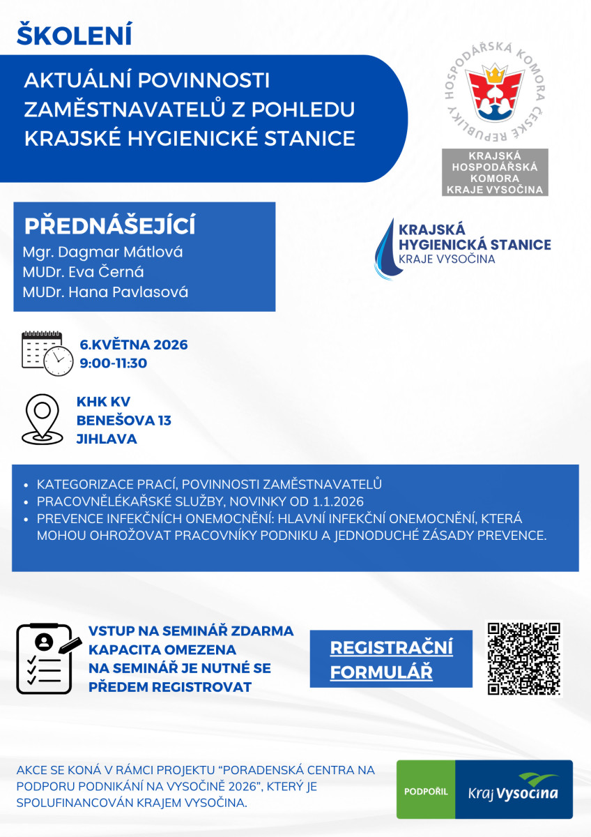 Školení je připraveno ve spolupráci s Krajskou hygienickou stanicí Kraje Vysočina.