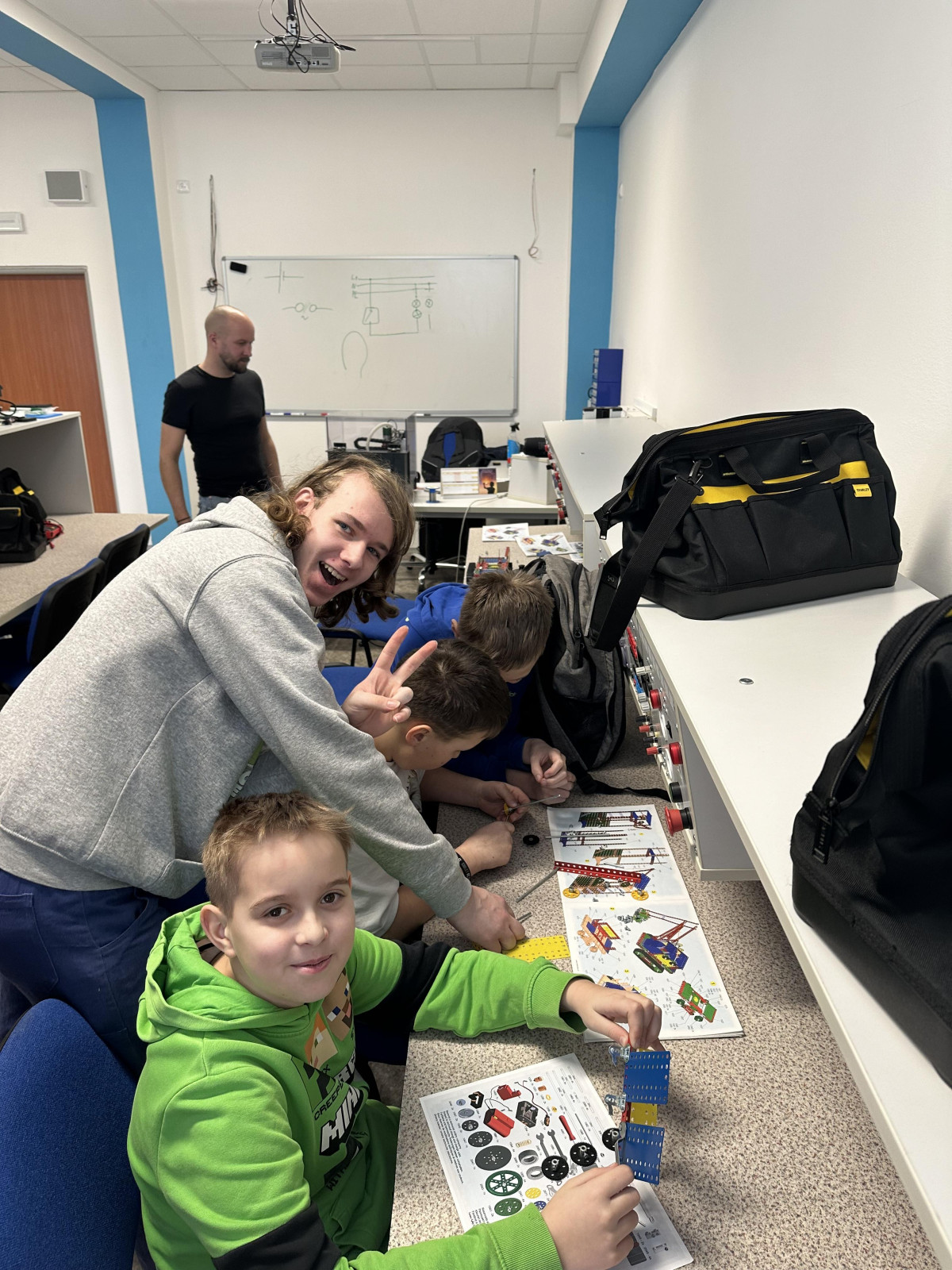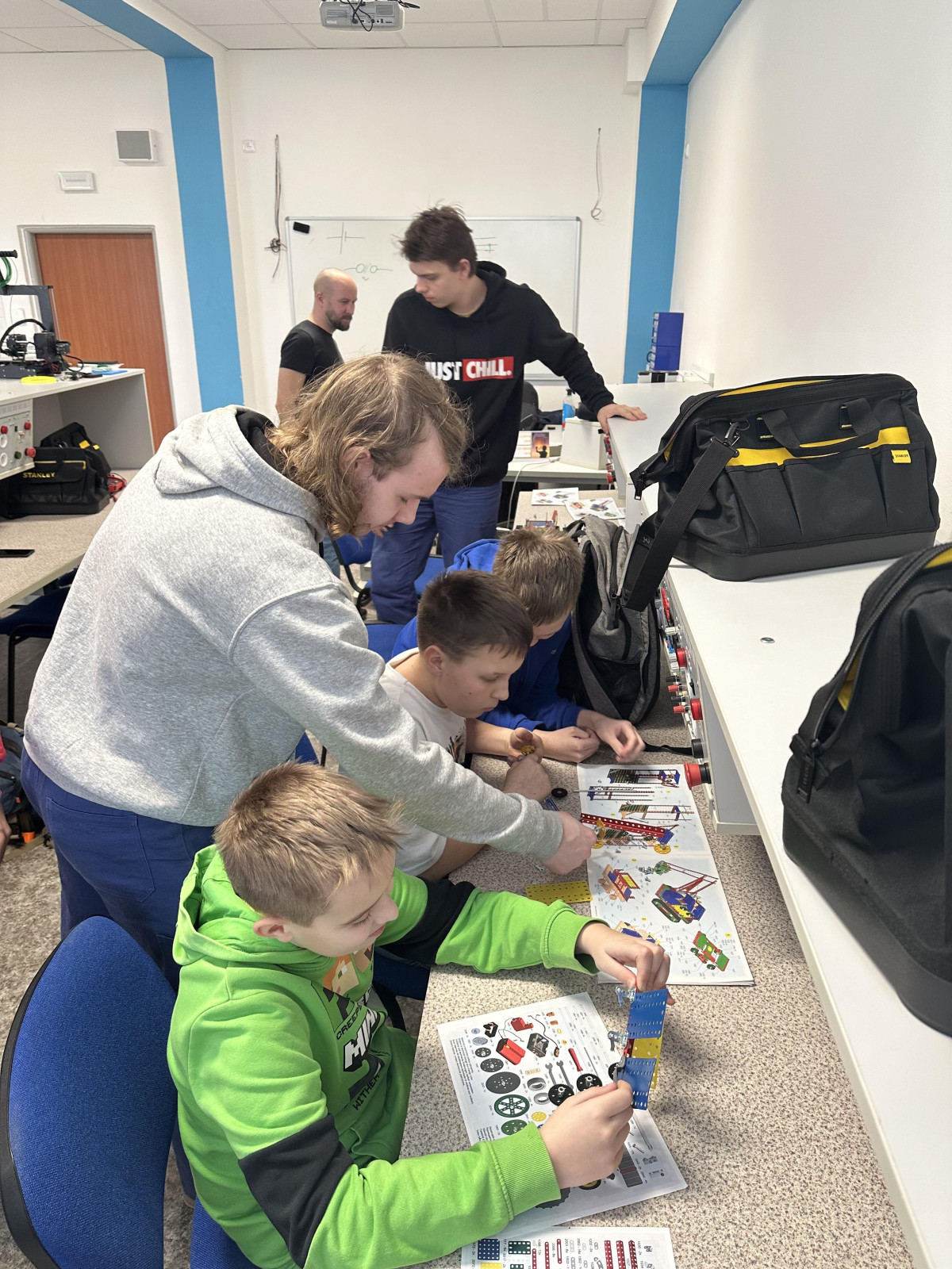 Pod vedením odborníků z firem soutěžní týmy společně plní zadané úkoly s využitím polytechnické stavebnice.