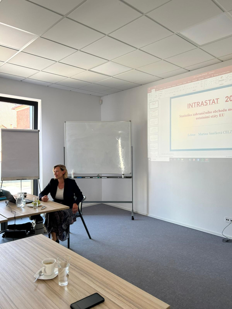 Seminářem nás provedla Martina Smčková, bývalá inspektorka Celního úřadu pro Kraj Vysočina, nyní školitelka a konzultantka v oblasti Intrastatu a cel.